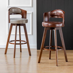 北欧实木家用靠背吧台椅轻奢简约高脚凳吧台凳奶茶店前台酒吧椅子