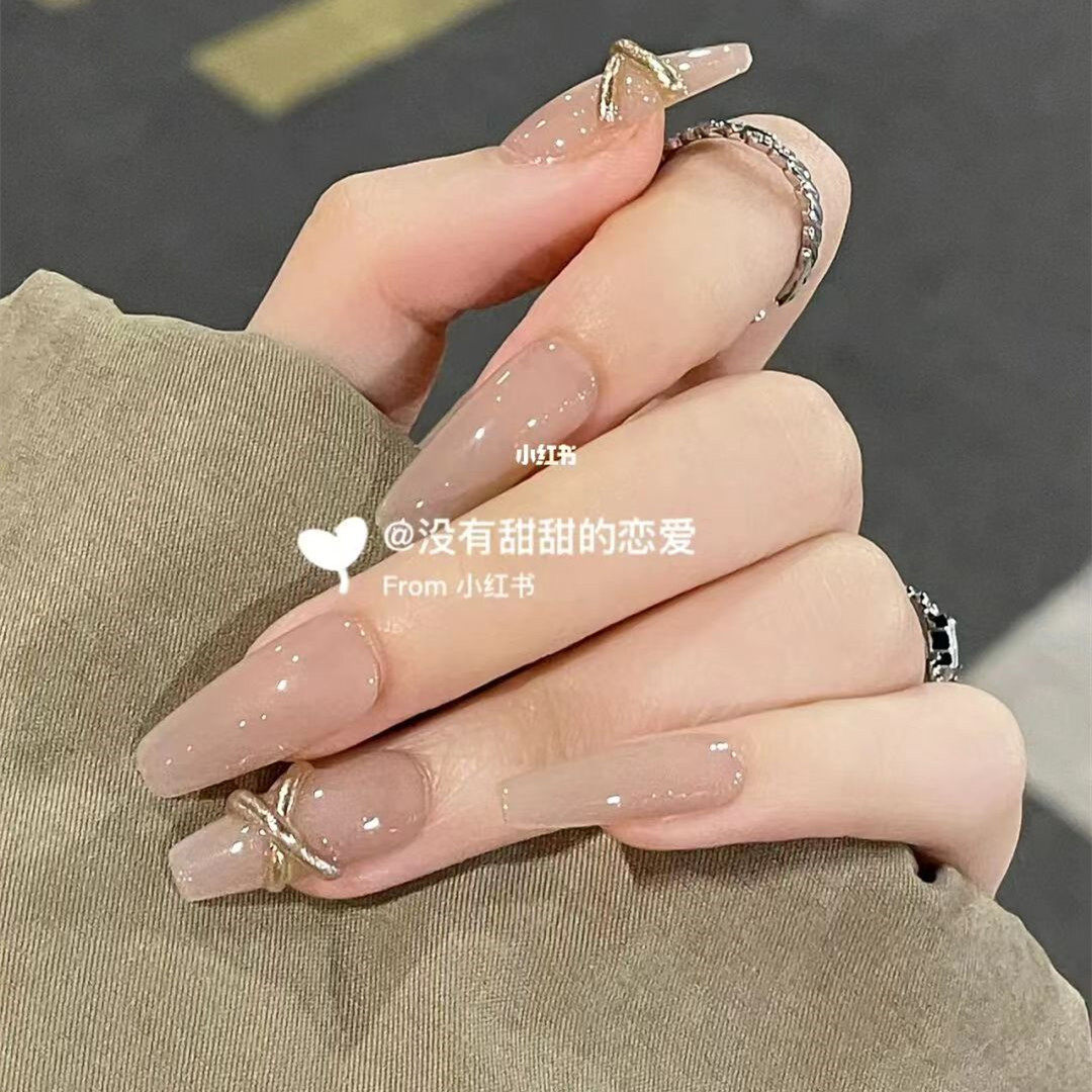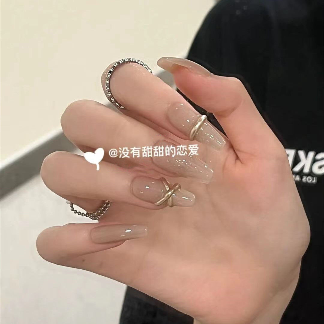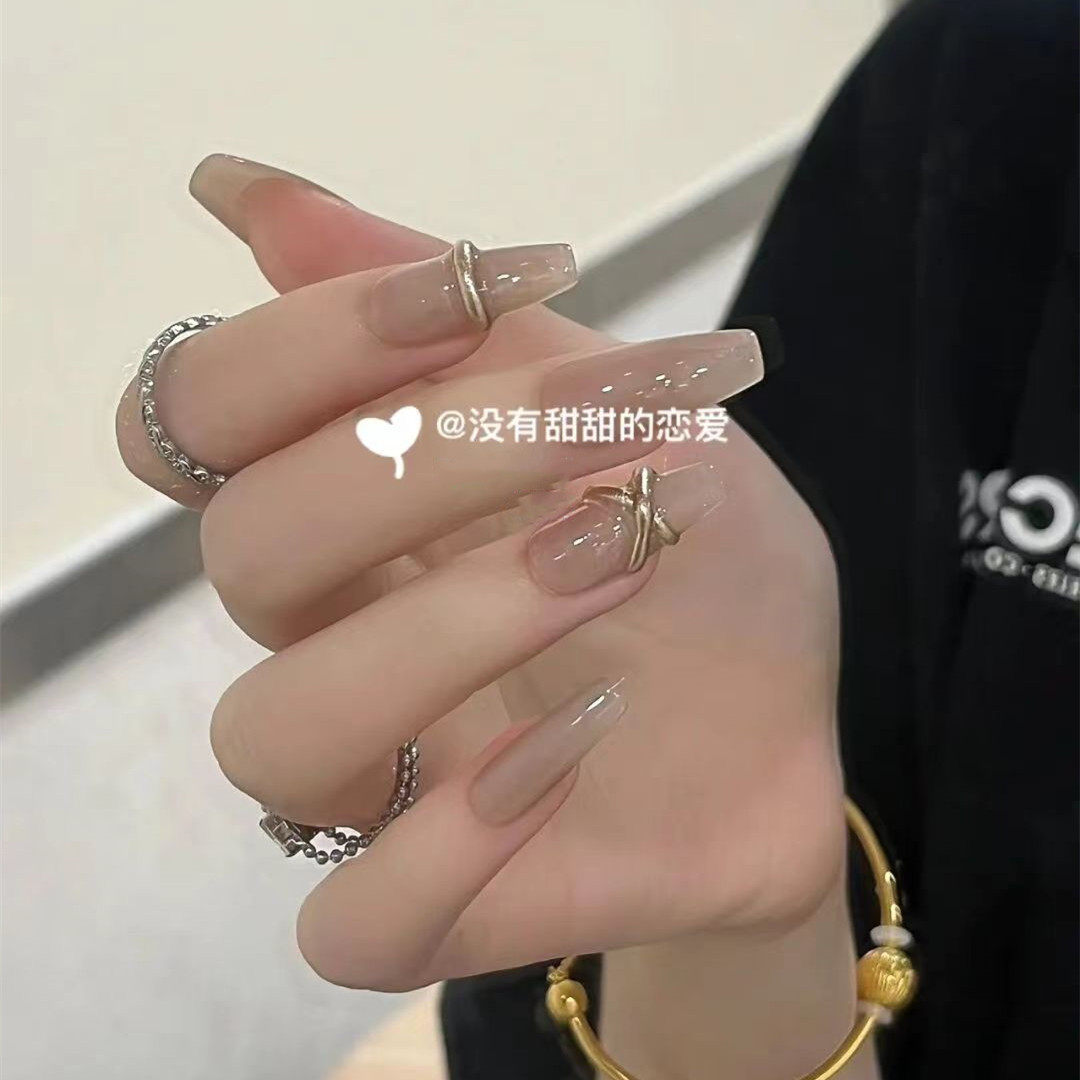 手工成品可拆卸穿戴甲假指甲贴片小红书同款 燕麦拿铁孕妇新娘可带