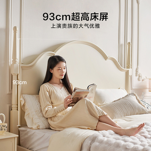 全友家居奶油风主卧室大床2025新款 小户型1米8双人大床1米5公主床