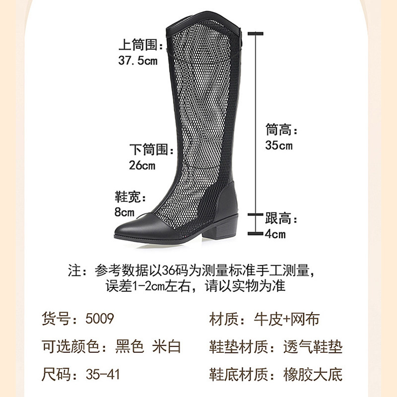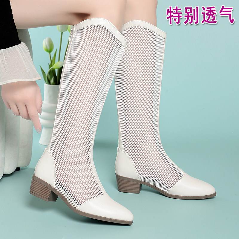 网靴透气粗跟高筒凉靴妈妈鞋 薄款 夏季 网纱镂空长筒靴女2025年新款