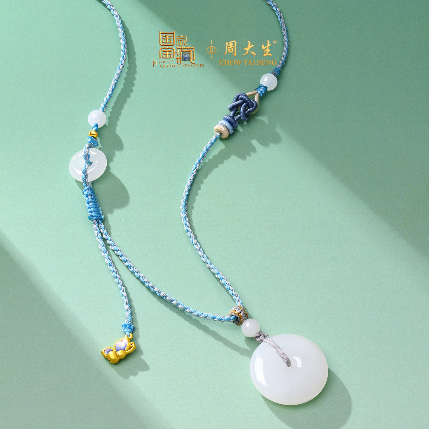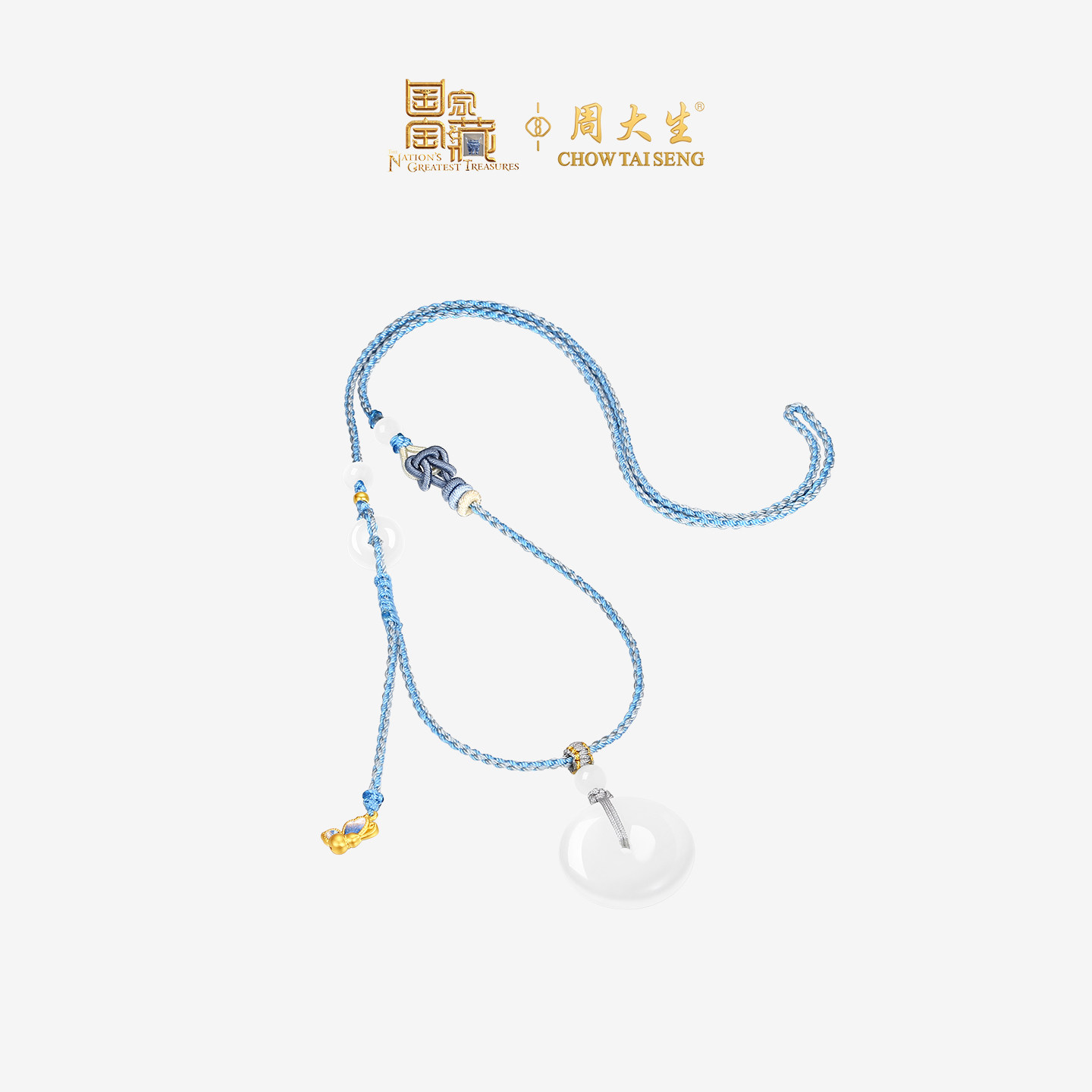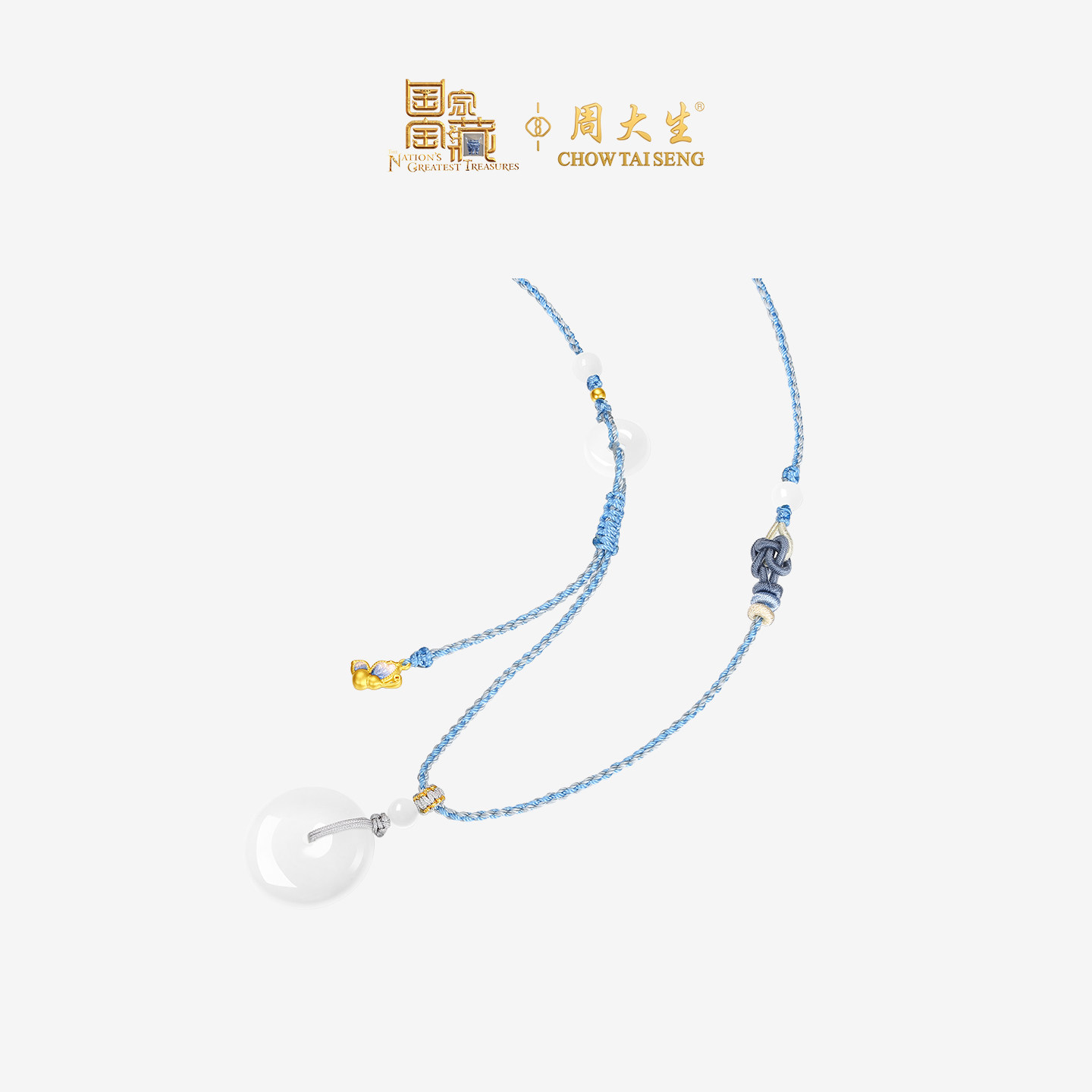 周大生国家宝藏青花瓷黄金镶玉吊坠女款 足金和田玉平安扣生日礼物