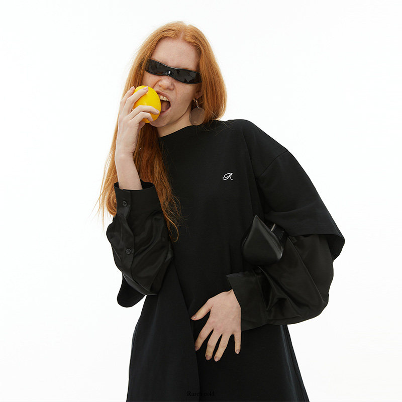 拼接假两件长袖 醋酸袖 T恤 Rarelicold Rockrio