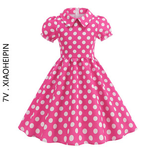 女童复古港风年代感大摆波点连衣裙子洋气可爱公主儿童表演出服装