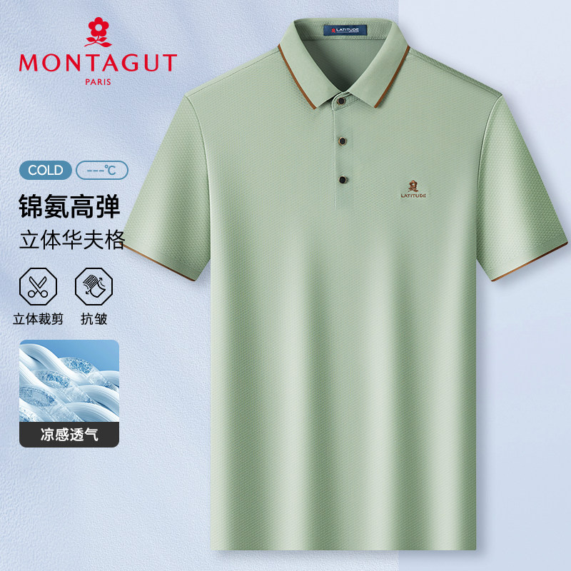 冰丝凉感 男Polo衫 华夫格 短袖 高弹翻领T恤凉感抗皱J 梦特娇夏季