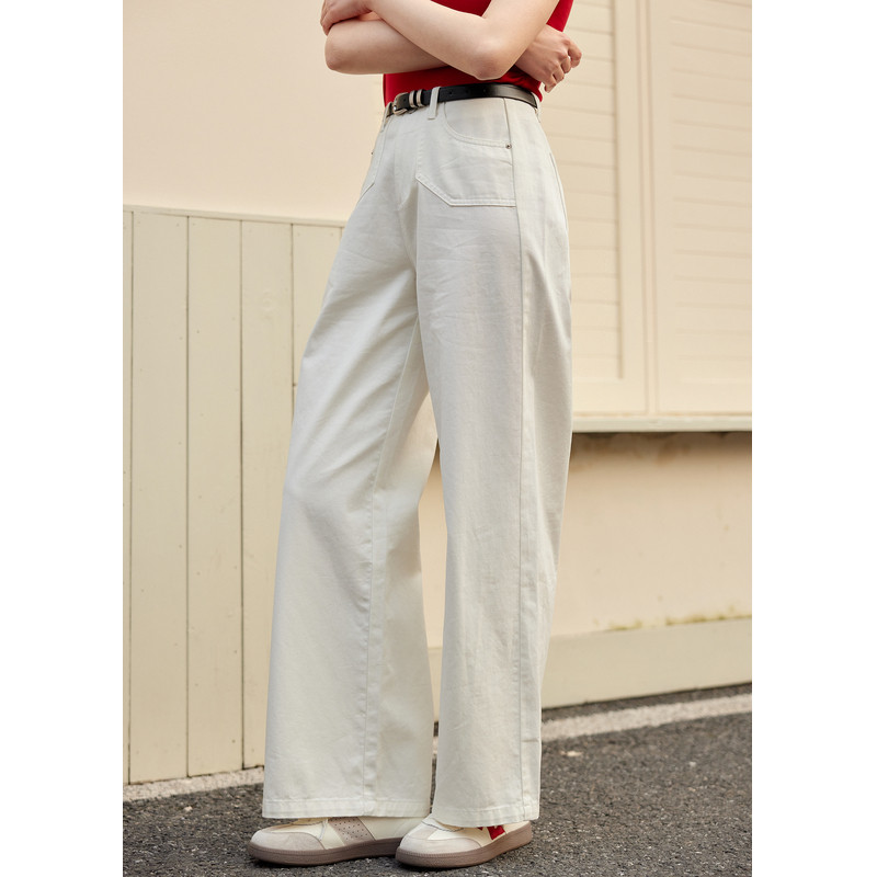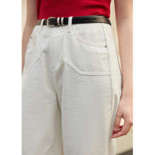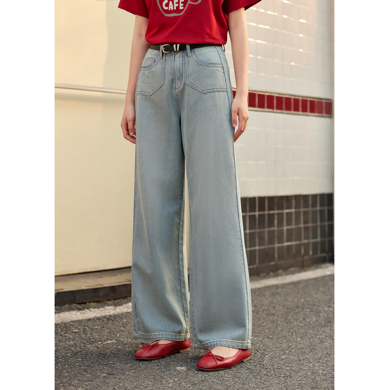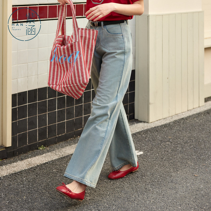 复古亲肤透气百搭宽松休闲裤 新款 女士夏季 紫涵蓝色做旧直筒牛仔裤