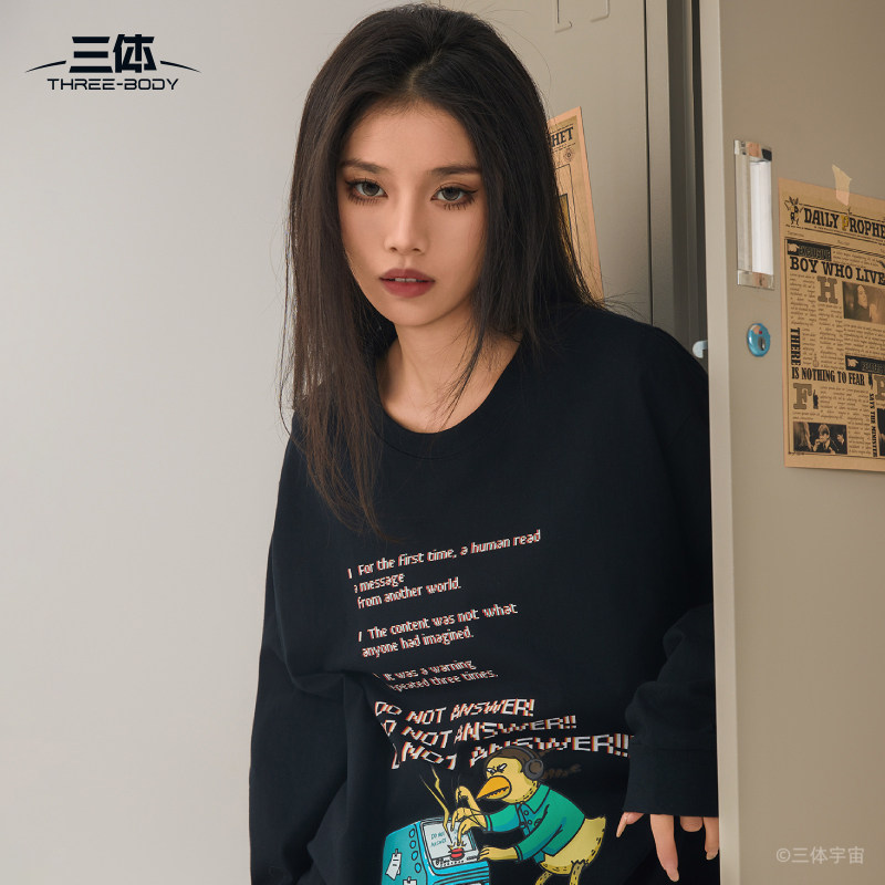 打底衫 三体 情侣装 T恤男女同款 宽松圆领上衣 北海怪兽联名长袖