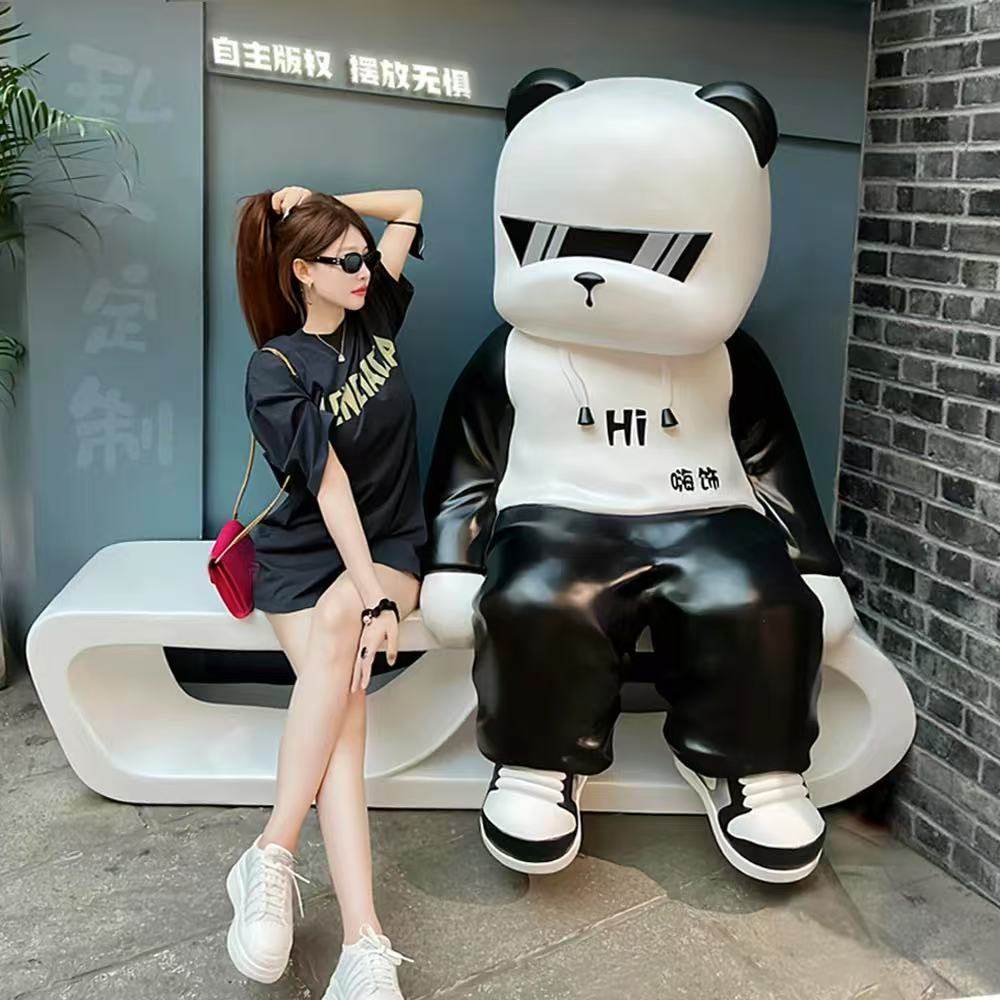 玻璃钢雕塑定制商场酒吧饭店门口大型卡通人物网红熊猫吉祥物摆件