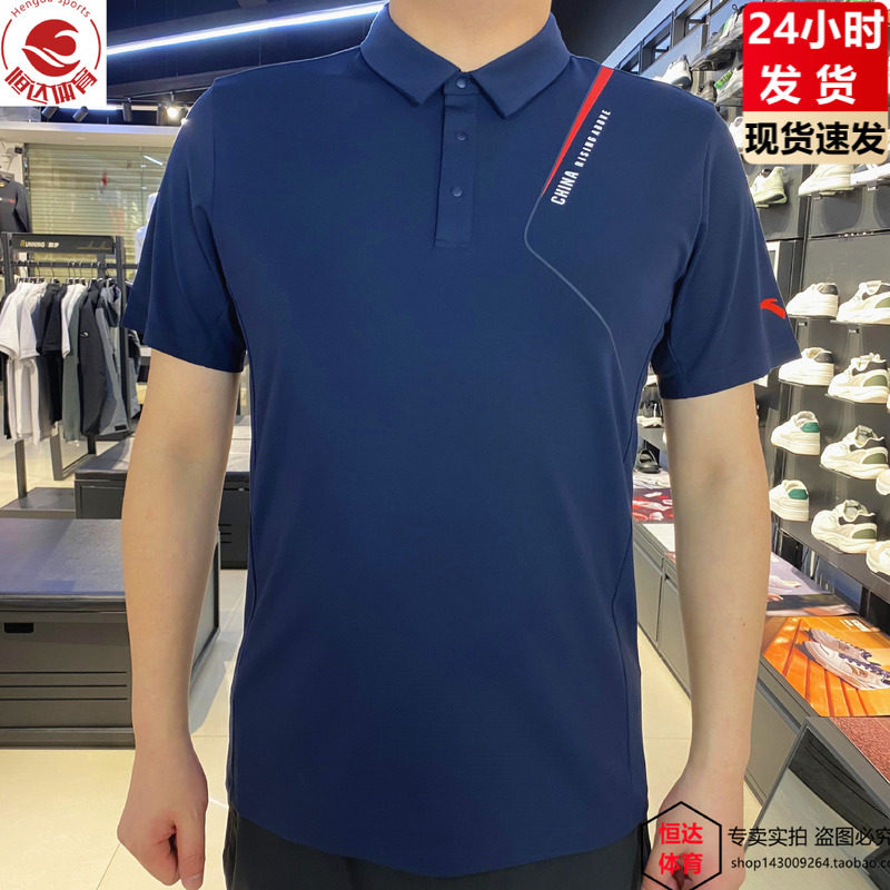 新款 男夏季 商务休闲翻领t恤冰肤挺括上衣152527137 短袖 安踏polo衫