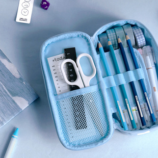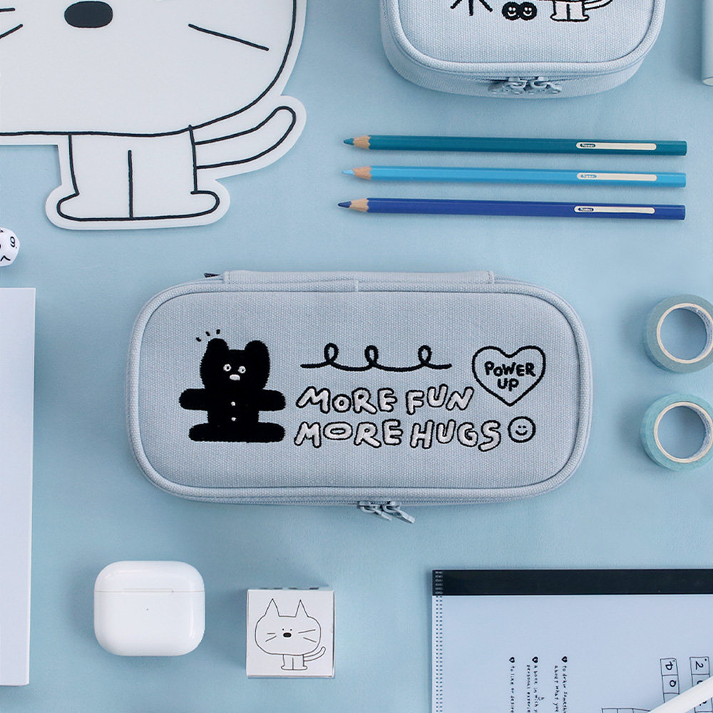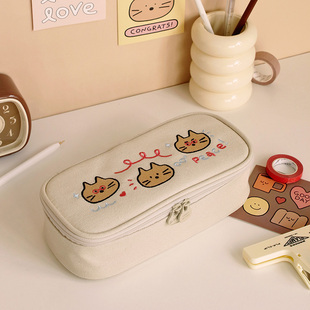 韩国ICONIC可爱插画刺绣猫咪大容量笔袋学生文具收纳袋铅笔盒ins