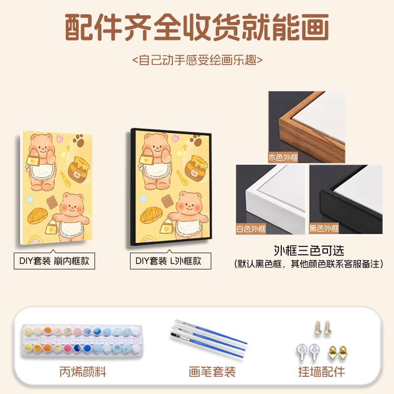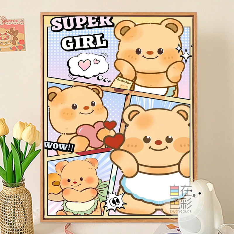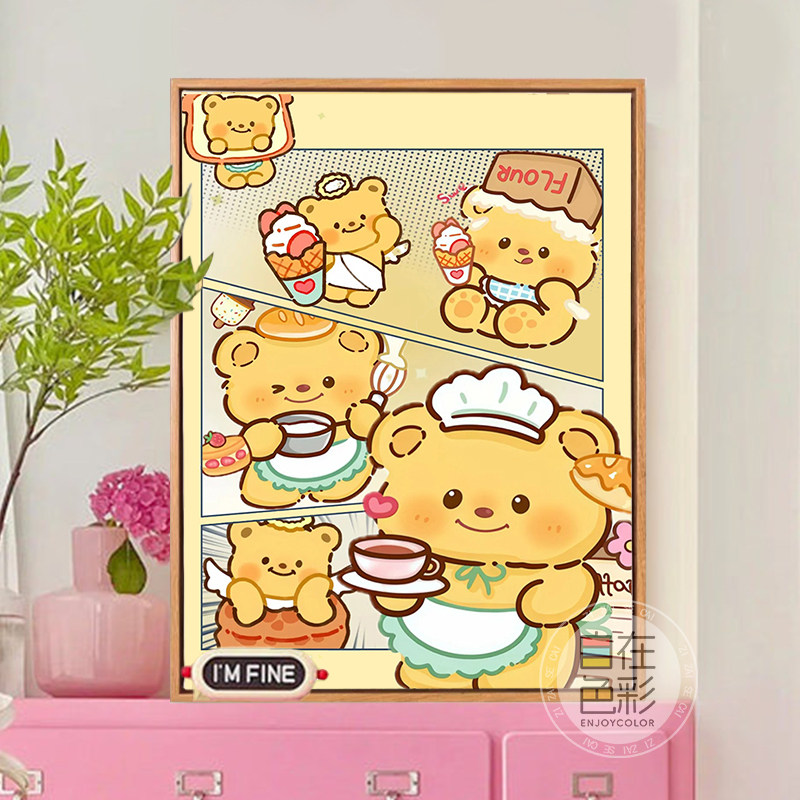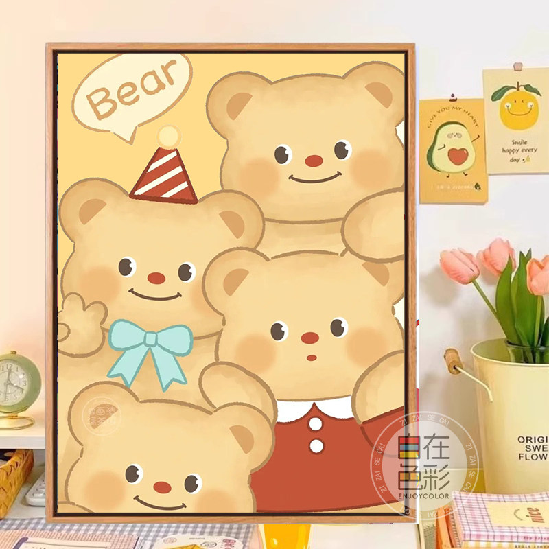 黄油小熊数字油画diy可爱治愈系解压手工填充涂色画油彩丙烯挂画