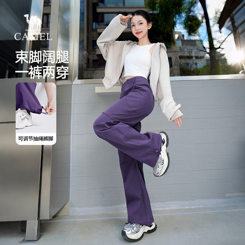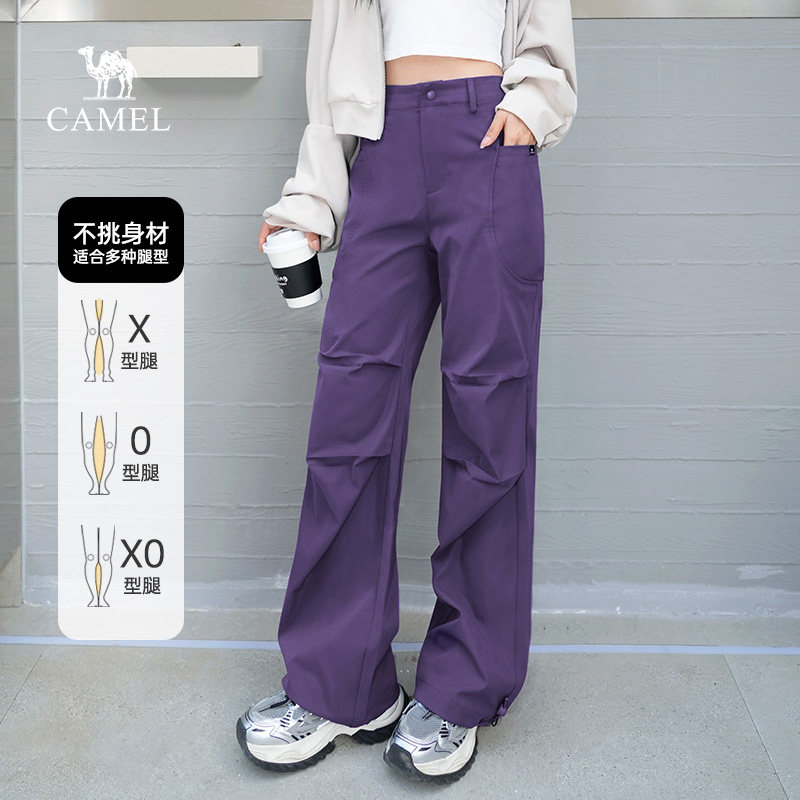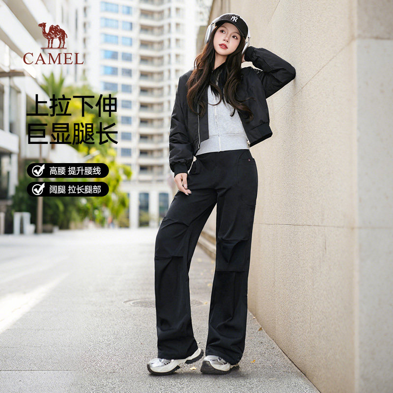 秋冬直筒束脚抽绳中性休闲伞兵长裤 骆驼女装 2025新款 裤 子女 工装
