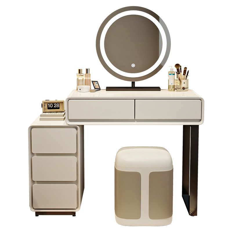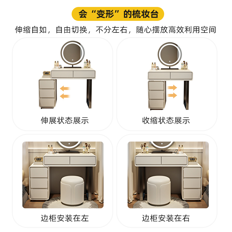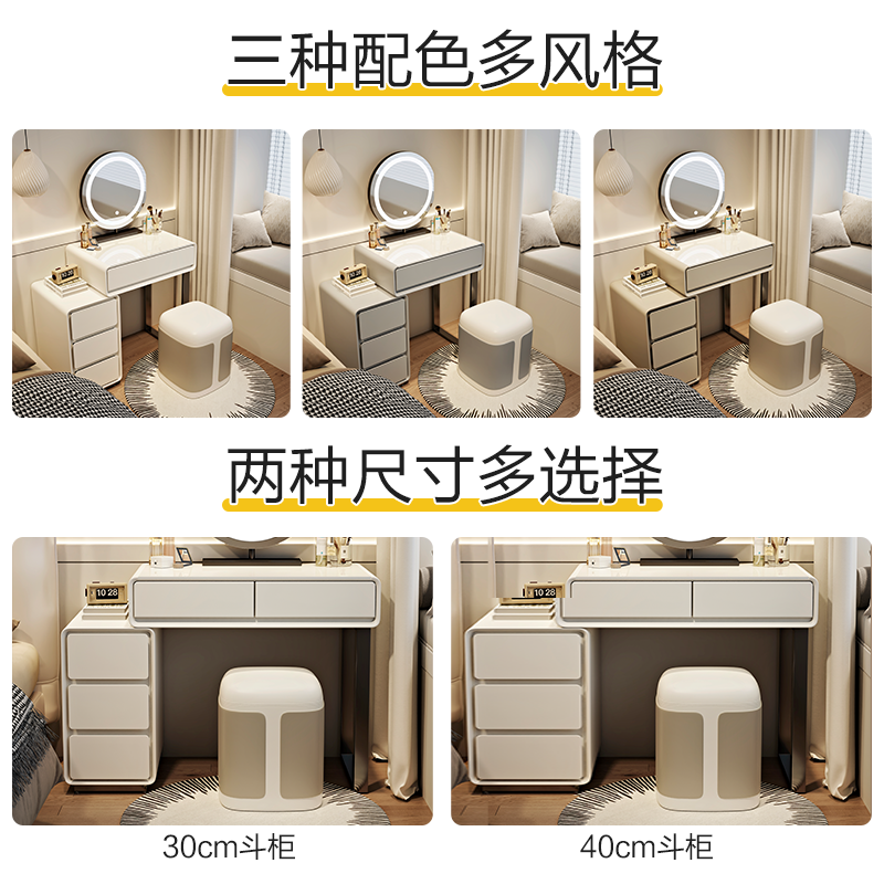 新款 实木岩板梳妆台卧室现代简约小型迷你奶油风化妆桌收纳柜一体
