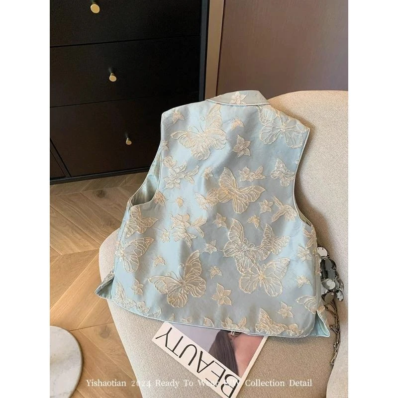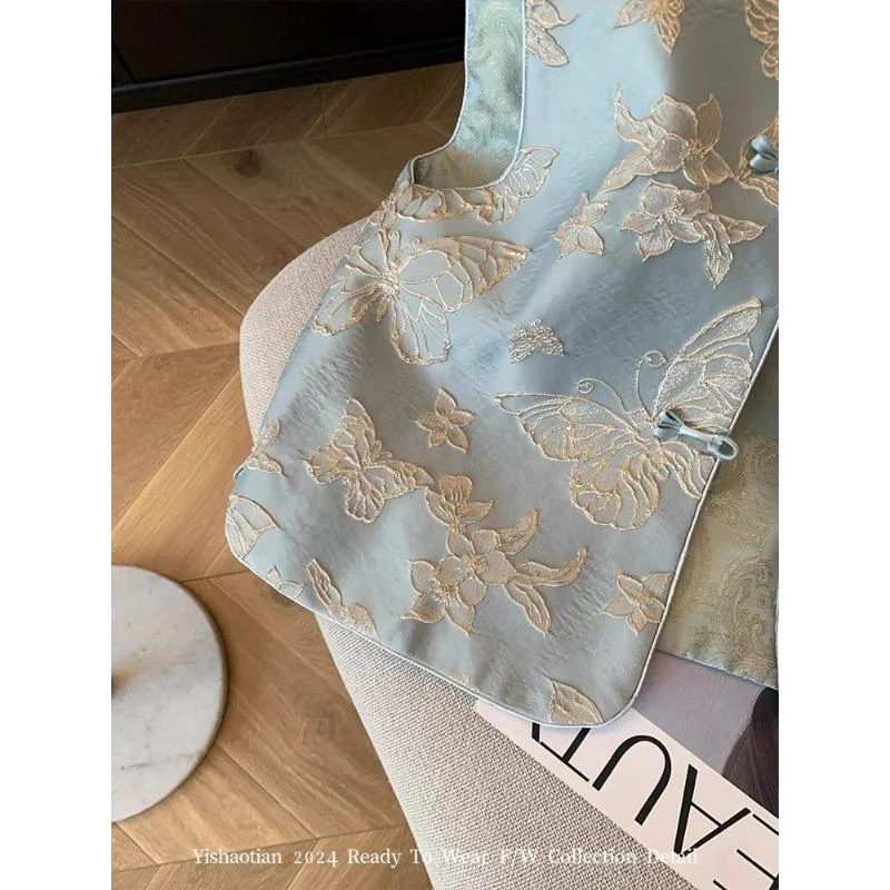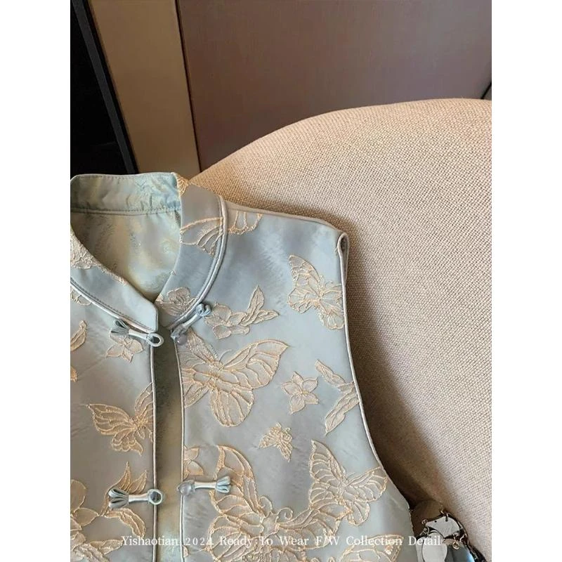 马夹背心女外搭秋 立领坎肩上衣唐装 新中式 国风马甲高级感宋锦无袖