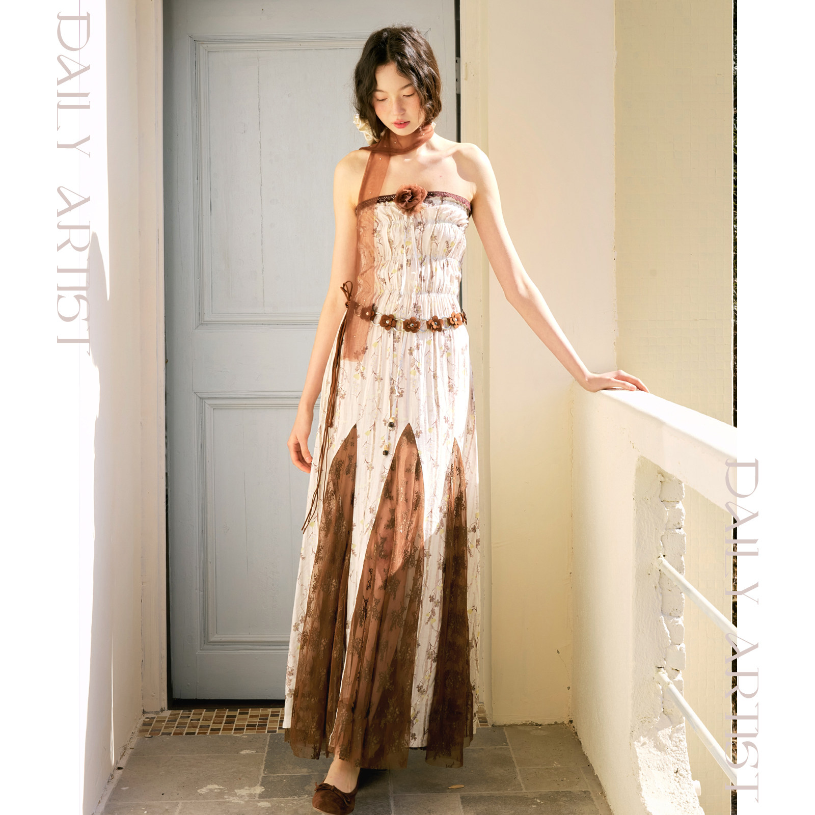 今日艺术家原创2025春夏波西米亚风碎花花朵抹胸长裙