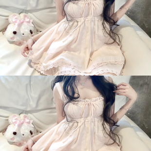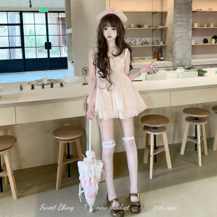全棉提花吊带连衣裙少女感显瘦弹力花苞短裤 BBING甜饼 恋恋甜心