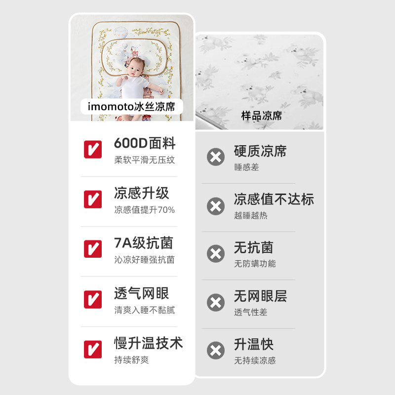 imomoto婴儿凉席冰丝凉垫幼儿园儿童新生宝宝夏季 专用透气抗菌A类
