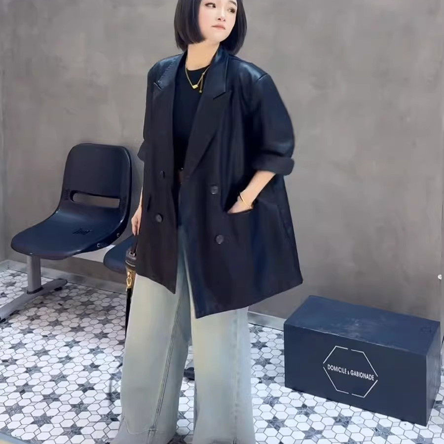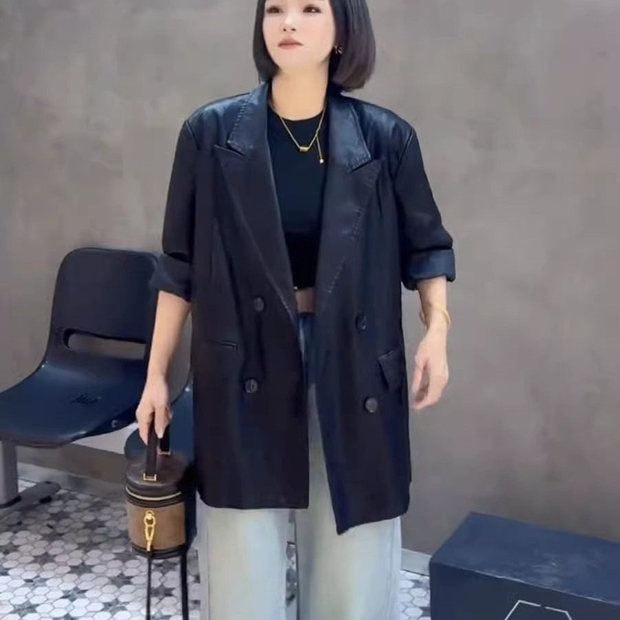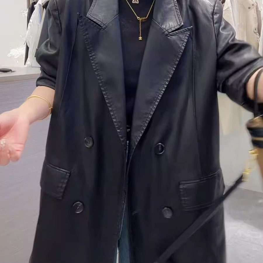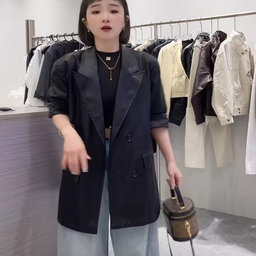 黑色PU皮西装 设计感小个子复古宽松西服 皮衣外套女2026年春秋新款