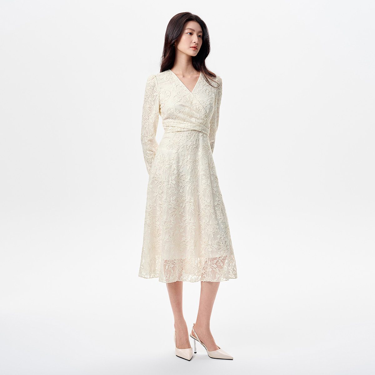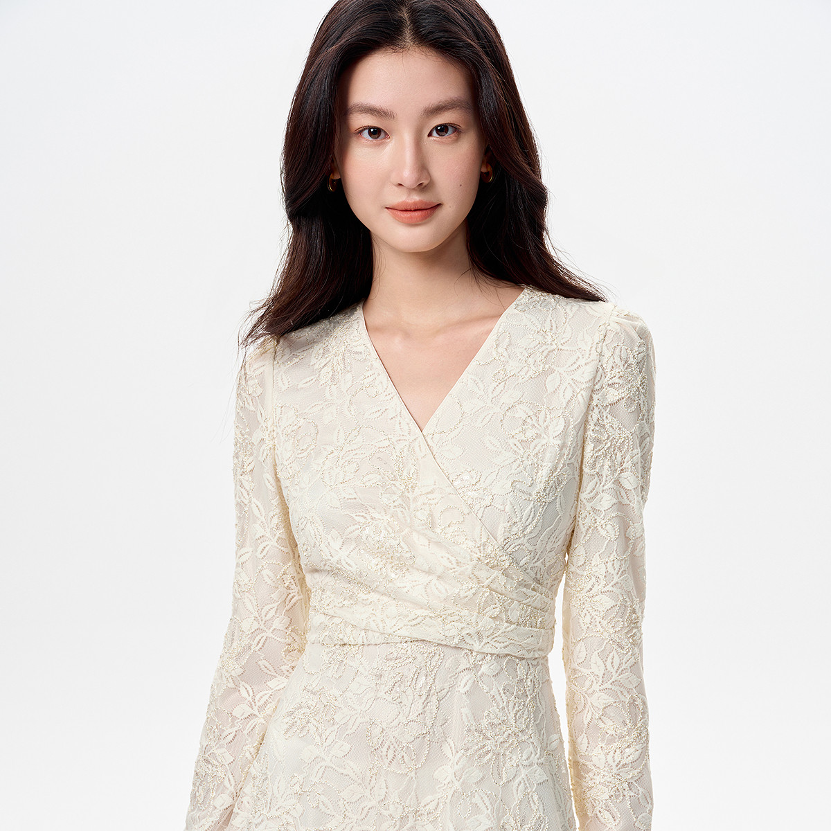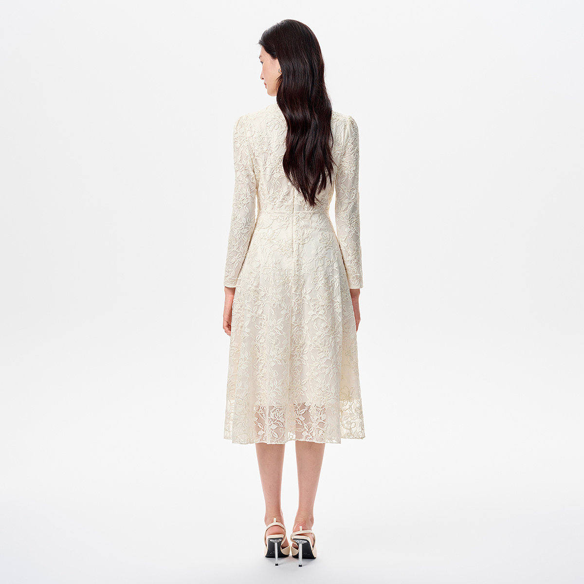 珂莱蒂尔2025秋新法式 玫瑰裙 蕾丝连衣裙气质刺绣修身 明星同款