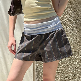 女百搭阔腿显瘦休闲裤 运动撞色腰头拼接条纹宽松短裤 美式 WEEKEEP