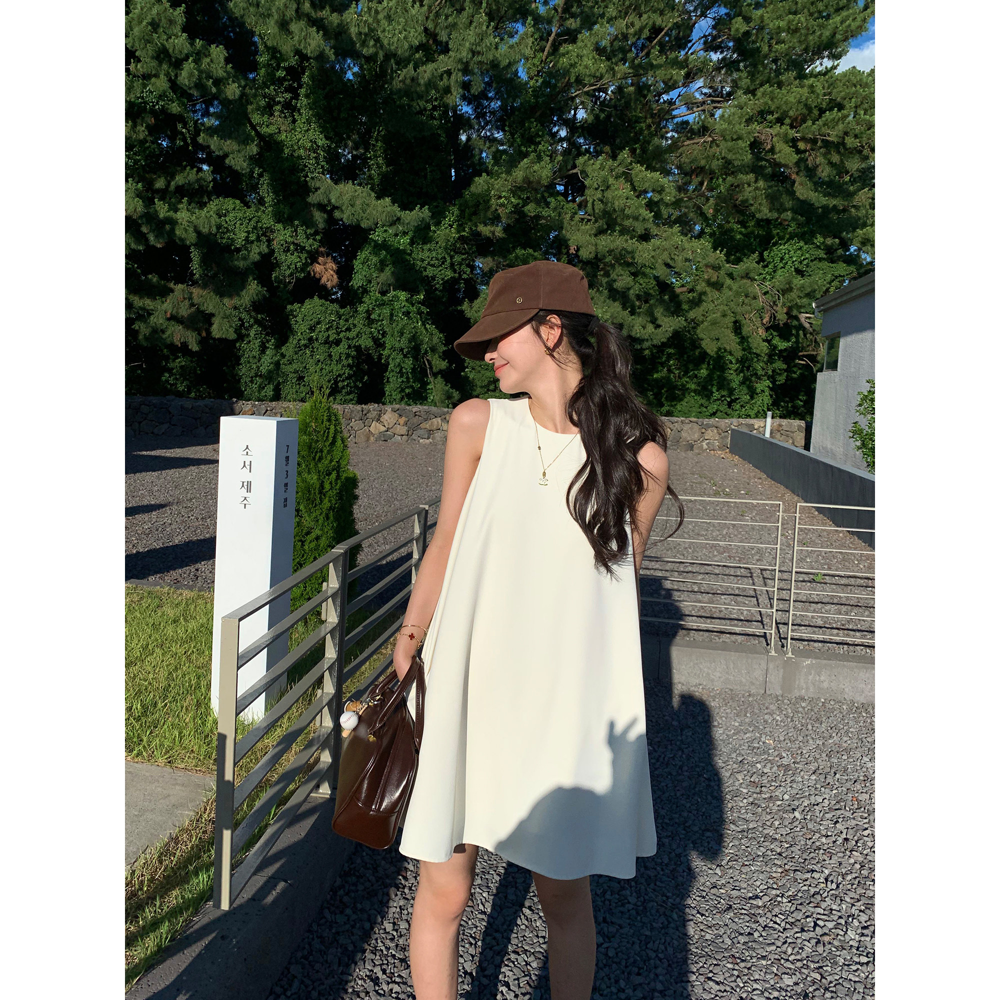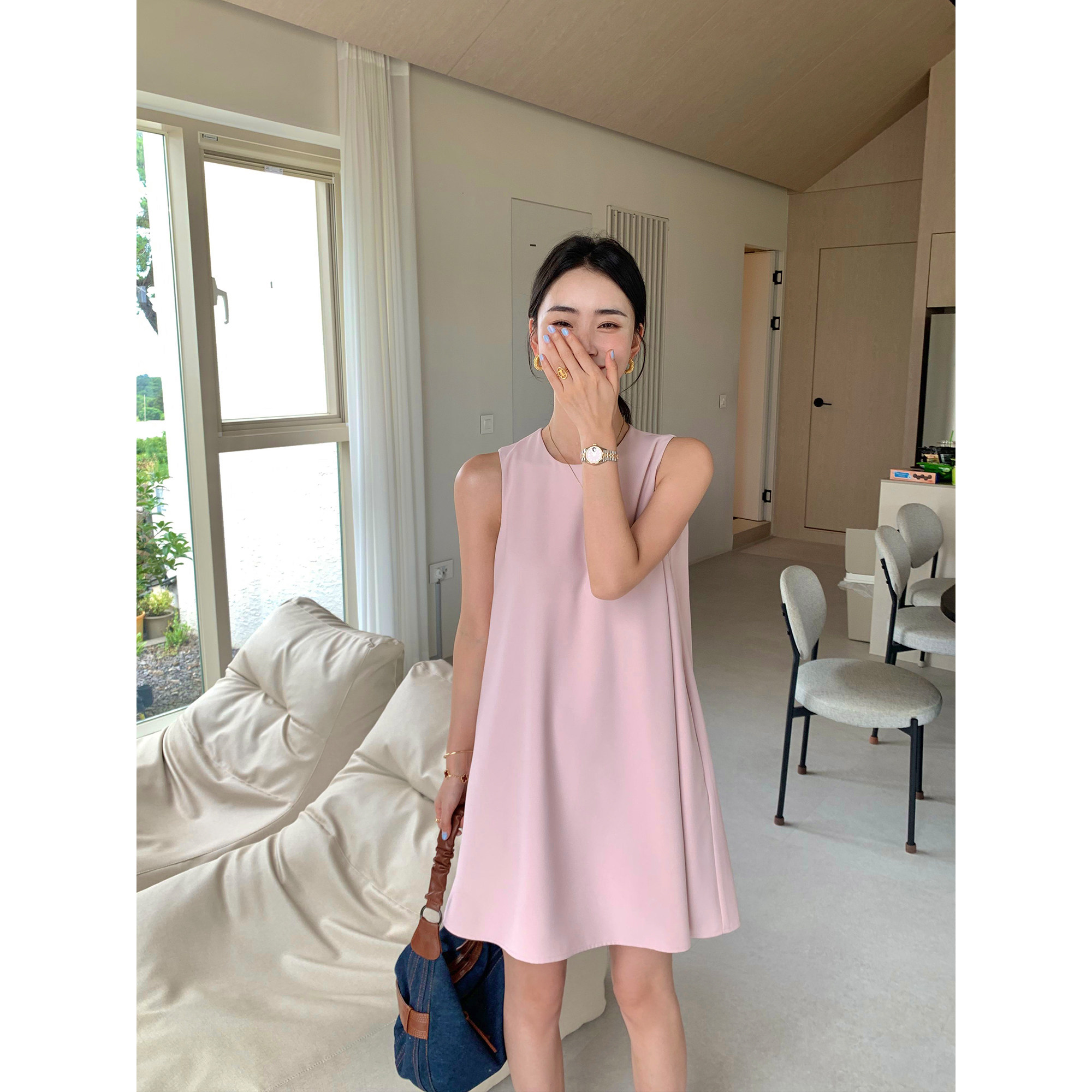 连衣裙女夏季 pusumede 圆领无袖 法式 小众遮肉宽松背心短裙 极简风
