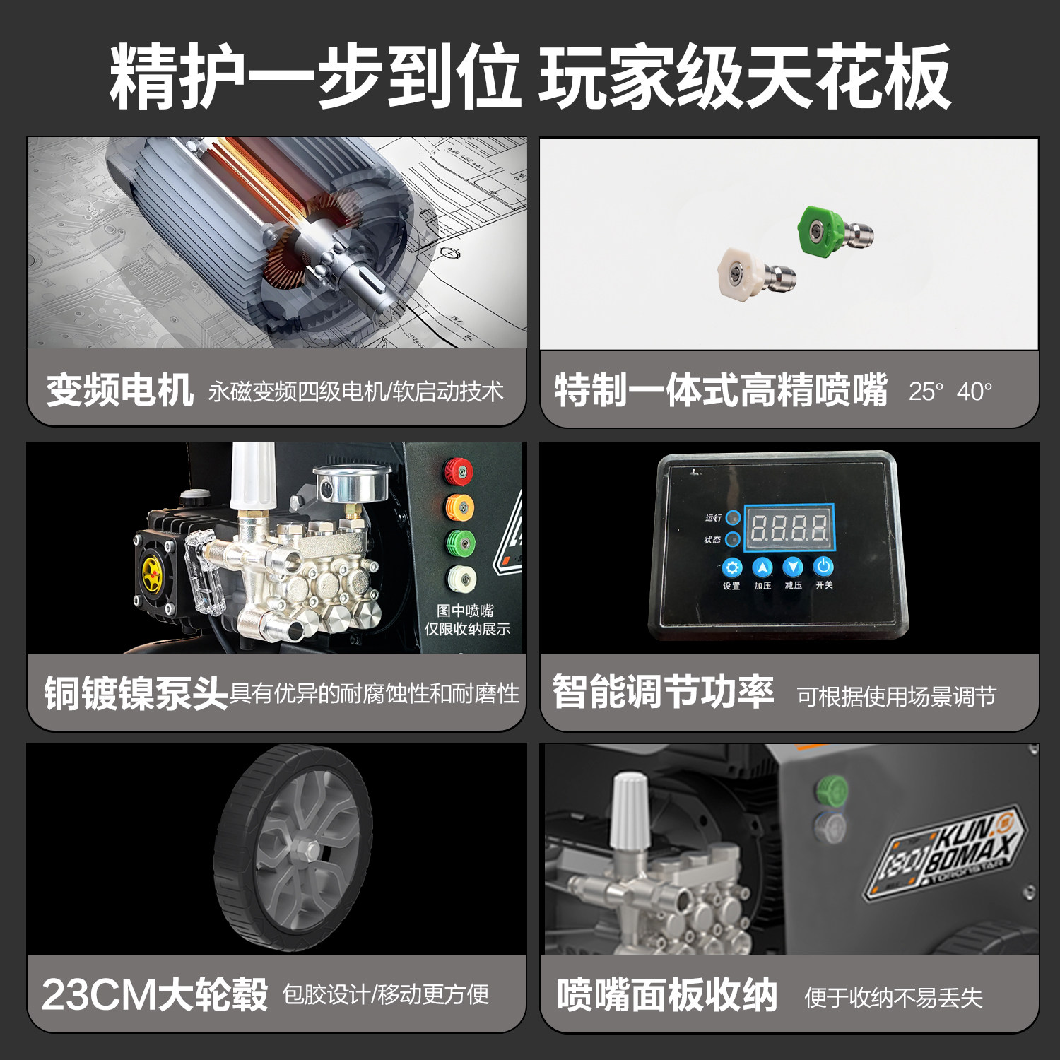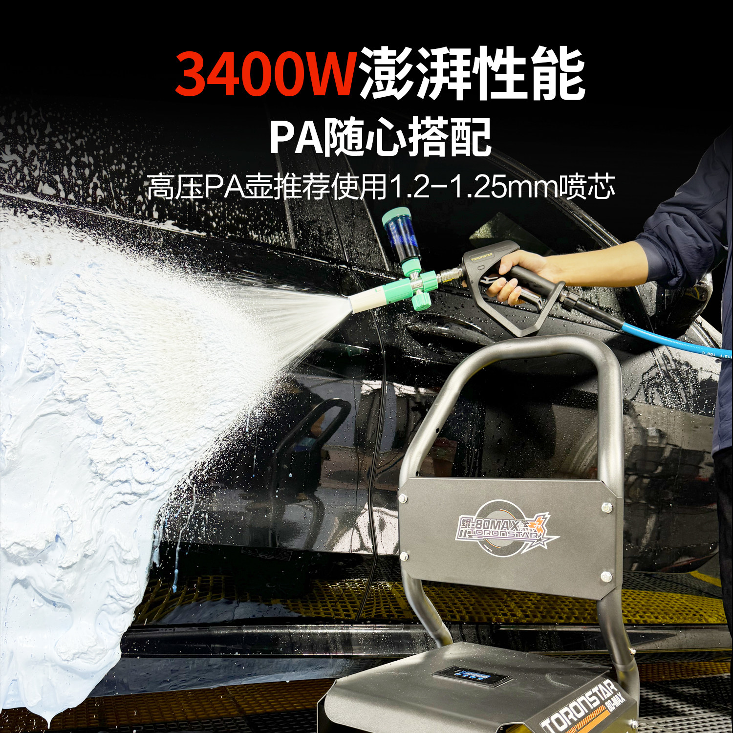 小亿鲲80MAX永磁电机商用曲轴泵清洗机220V大功率3400W商用洗车机