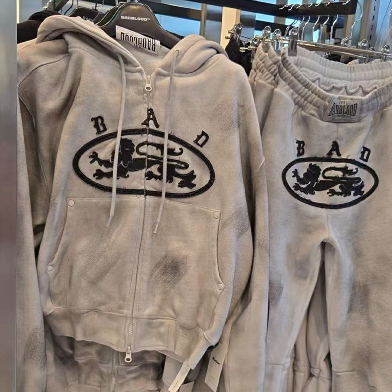 韩国badblood美式 男女外套 复古街头扎染连帽字母卫衣休闲运动套装