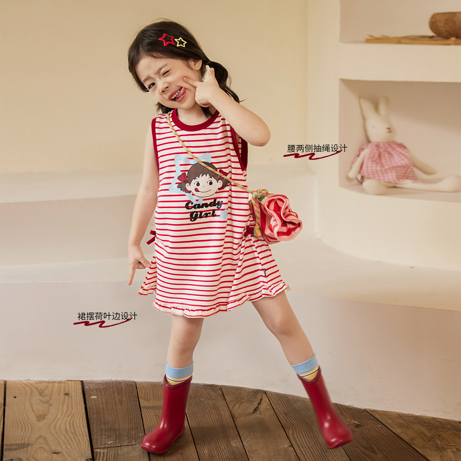 新款 2025夏季 儿童T裙公主裙 宝宝条纹连衣裙女薄款 小O宝Okids童装