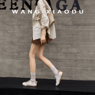 王小毒 女休闲软底小白板鞋 双子星 复古德训鞋 3cm内增高 原创