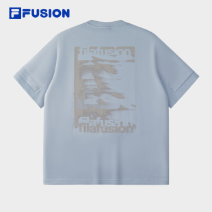 FUSION斐乐潮牌男子针织短袖 时尚 衫 新款 休闲宽松T恤 2025冬季 FILA