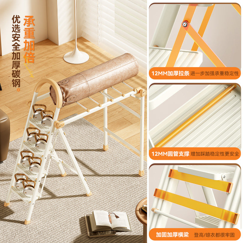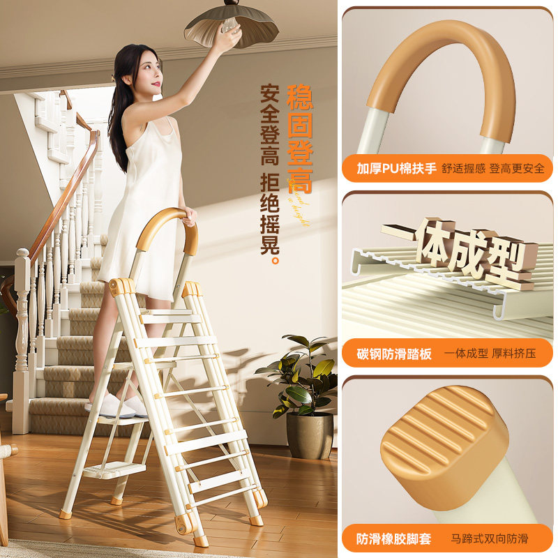 可思比梯子家庭折叠梯加厚加粗登高家用人字梯碳钢四步梯便携加宽