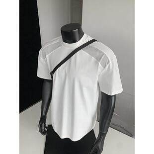 高级感半袖 设计感网眼拼接小领口短袖 速干冰丝凉感t恤男夏季 美式