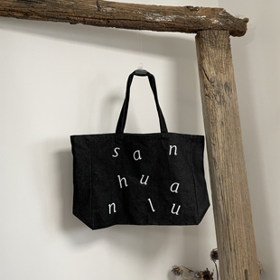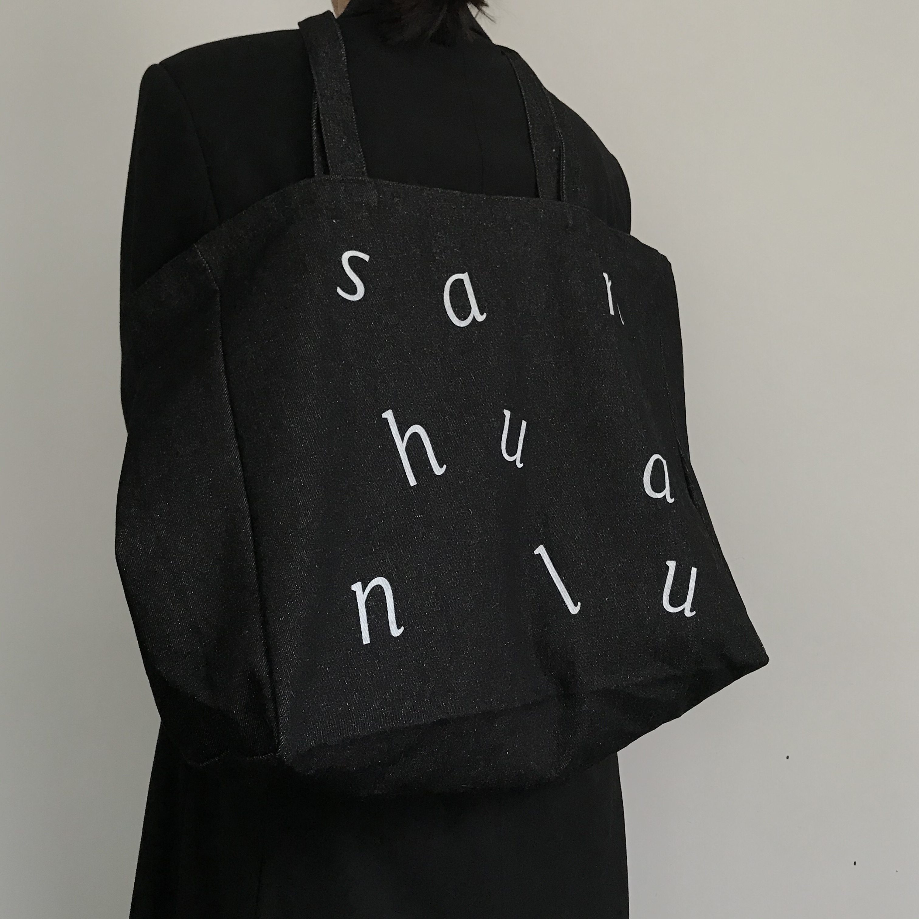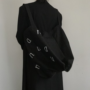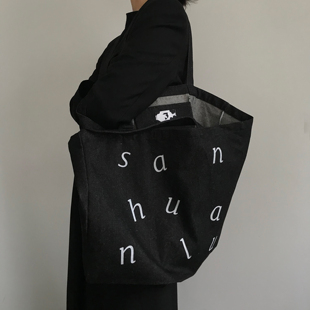 三环路原创字母牛仔包个性 复古牛仔布托特包 创意大容量单肩包时尚