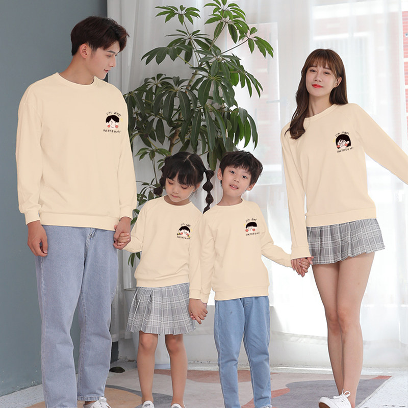 2024新款 家庭装 潮长袖 高端母女装 白色卫衣休闲一家四口秋装 亲子装