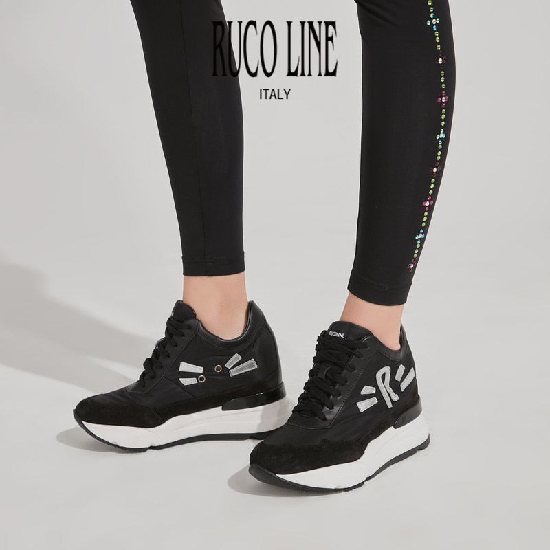 女休闲9cm内增高厚底鞋 跑鞋 Line如卡莱意大利奢华牛皮运动鞋 Ruco