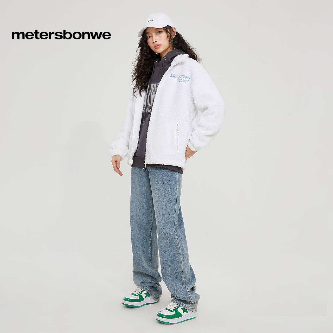 美特斯邦威潮流保暖摇粒绒棉服女款 立领简约字母点缀外套 秋冬时尚