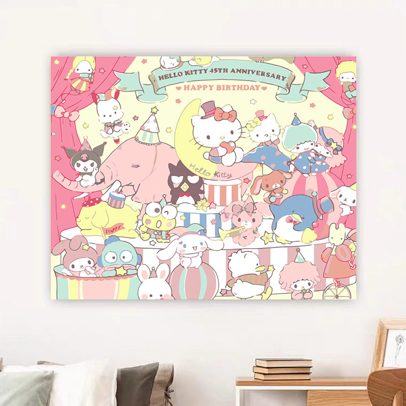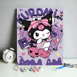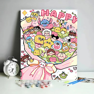 草莓熊数字油画diy儿童动漫手绘填色卡通油彩画三丽鸥填充丙烯画