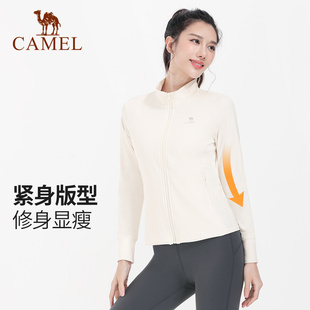 运动服上衣服 跑步服开衫 骆驼瑜伽服女秋冬薄绒外套修身 健身服长袖