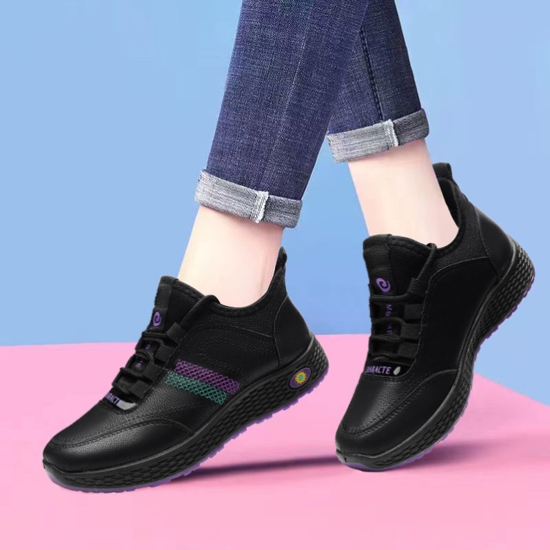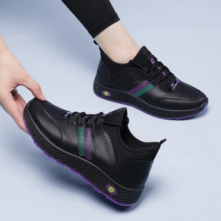 皮面软底防滑厨房上班工作鞋 黑色 女老北京加绒保暖防滑跑步运动鞋