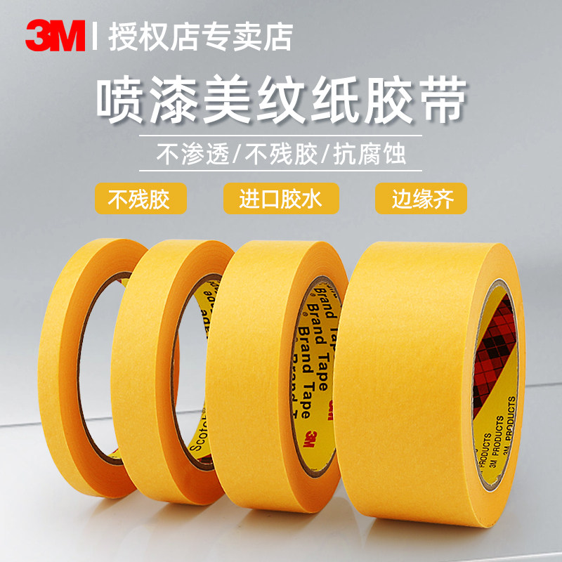 3M244美纹纸胶带和纸胶带耐高温3D打印模型遮盖 修美缝专用50m 汽车喷漆烤漆遮蔽无痕不残留不渗漆分色分界装