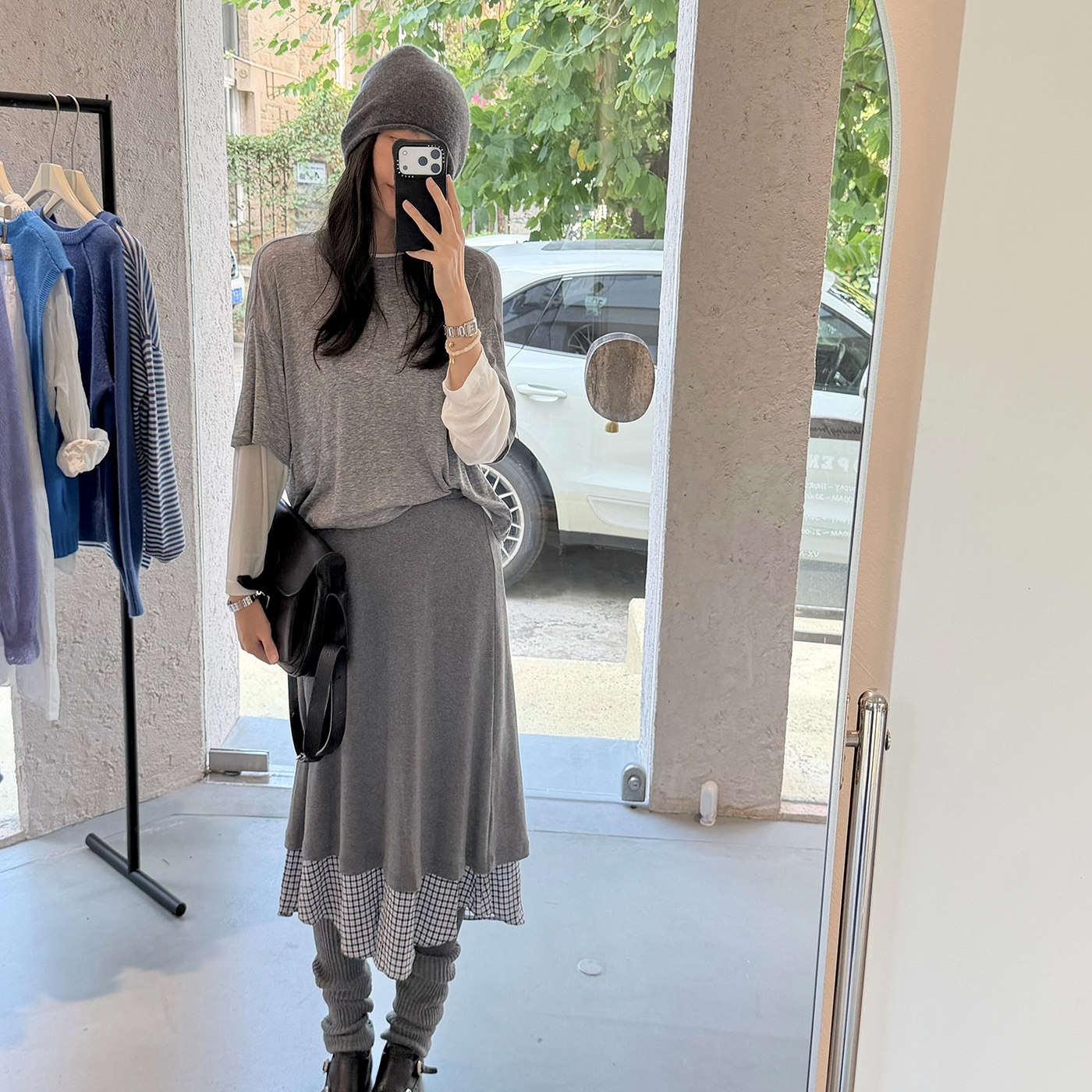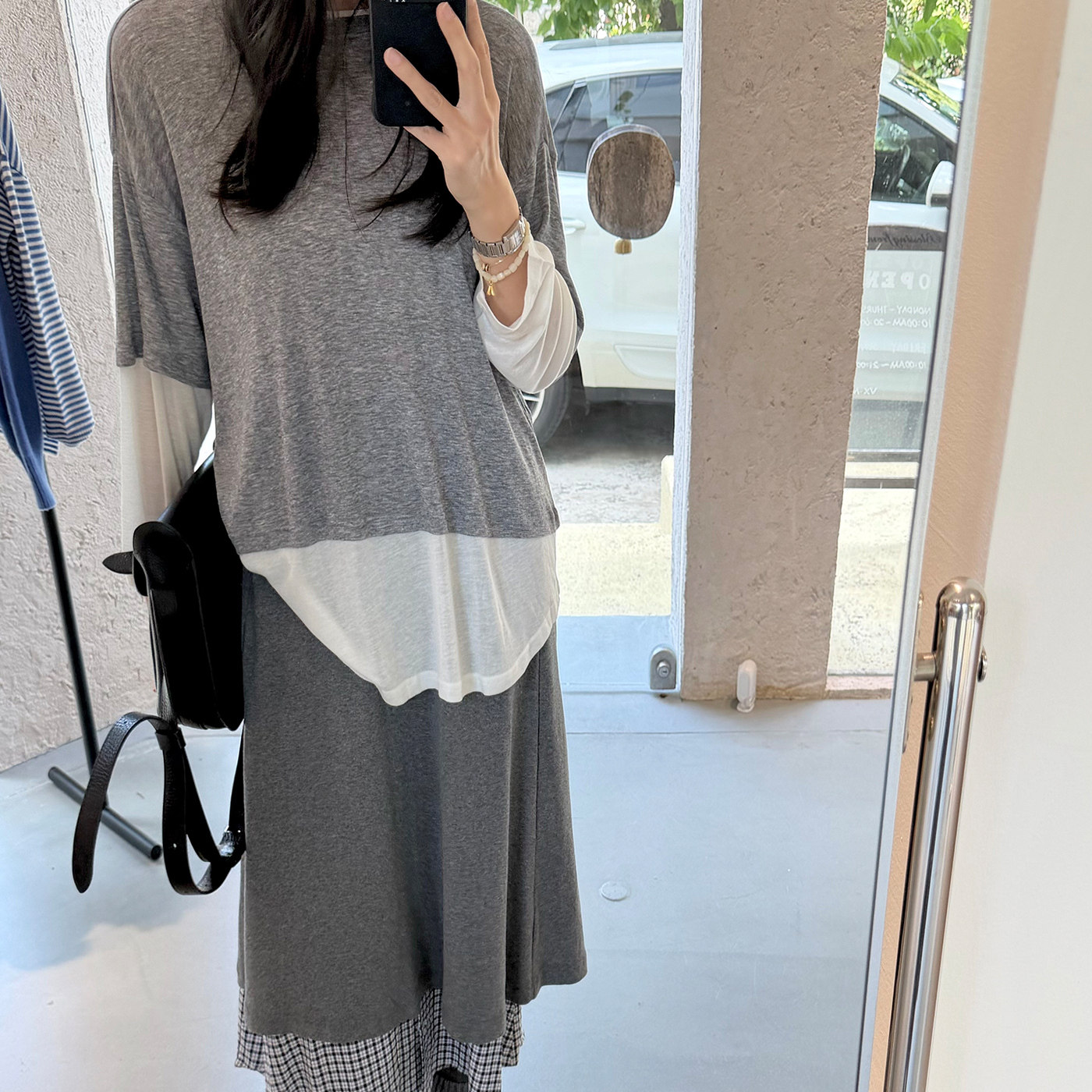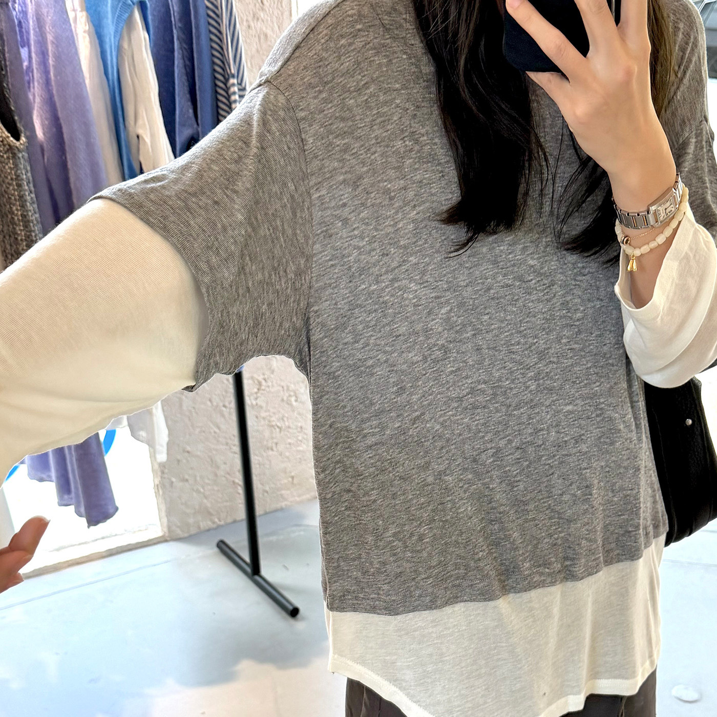 长袖 设计师原创假两件T恤 气质圆领上衣女 0EN NW8