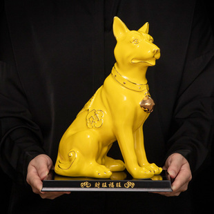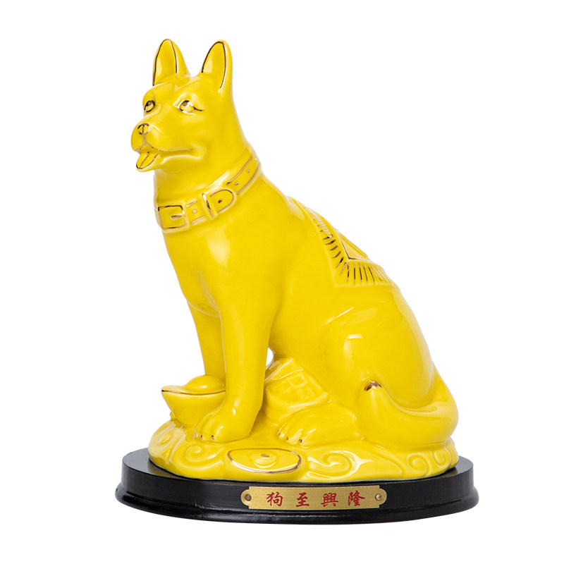 陶瓷黄色狗摆件十二生肖旺财小狗风水招财客厅家居瓷器工艺品摆设