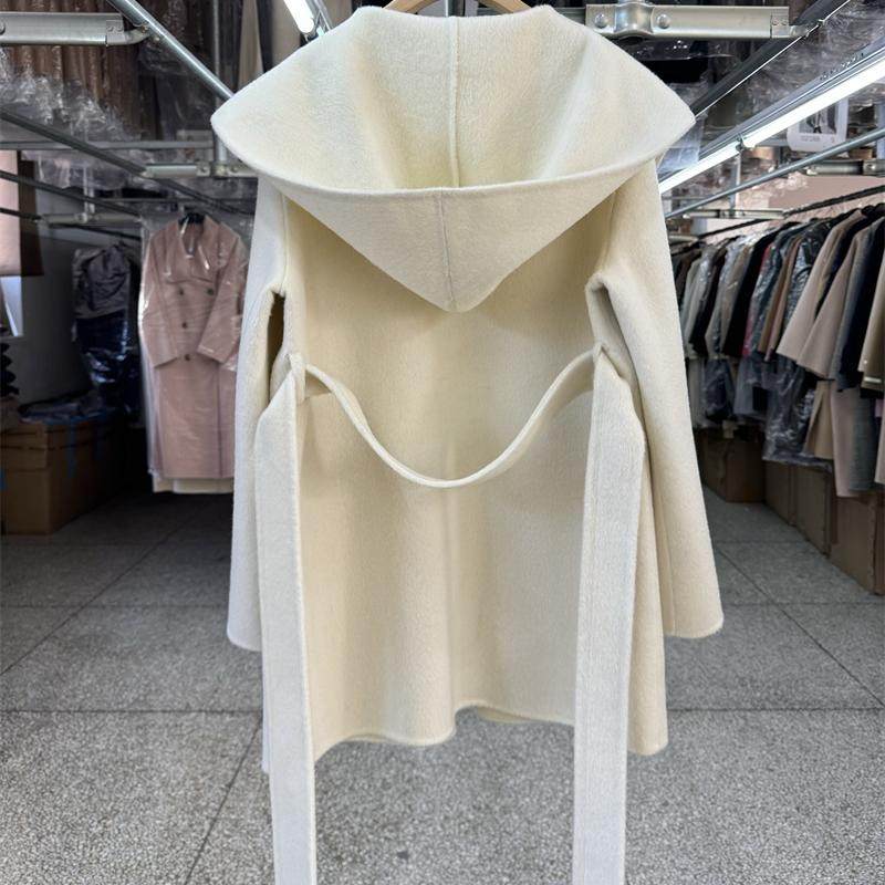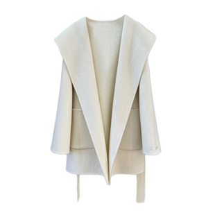 宽松简约系带毛呢外 25秋冬新款 M家同款 连帽双面羊毛大衣女短款