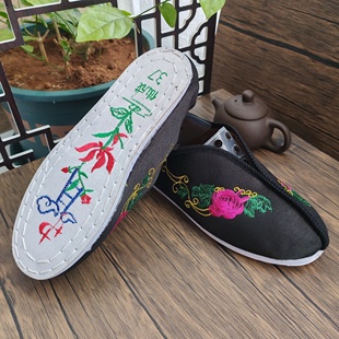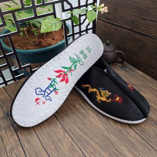 黑色红色寿衣配件死人去世冲喜丧葬殡葬用品 龙鞋 男女寿鞋 牡丹棉鞋