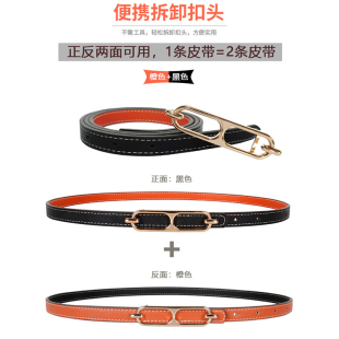 白色H家小皮带 饰配连衣裙收腰牛仔裤 凯莉细腰带女夏季 百搭双面装