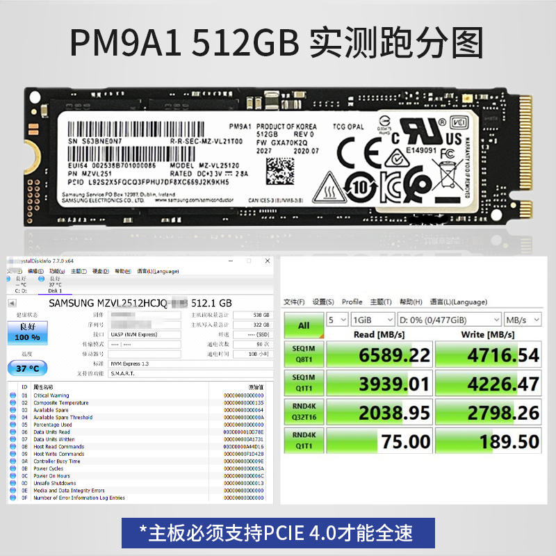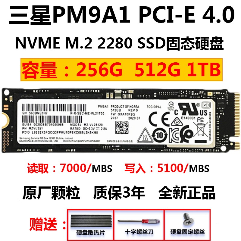 991A 256G 512G Samsung M.2 PM9A1 PCIe4.0固态硬盘NVMe 三星