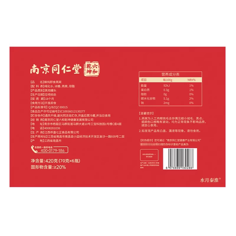 水月秦淮南京同仁堂六和乾坤鲜炖即食燕窝滋补孕妇长辈营养送礼盒