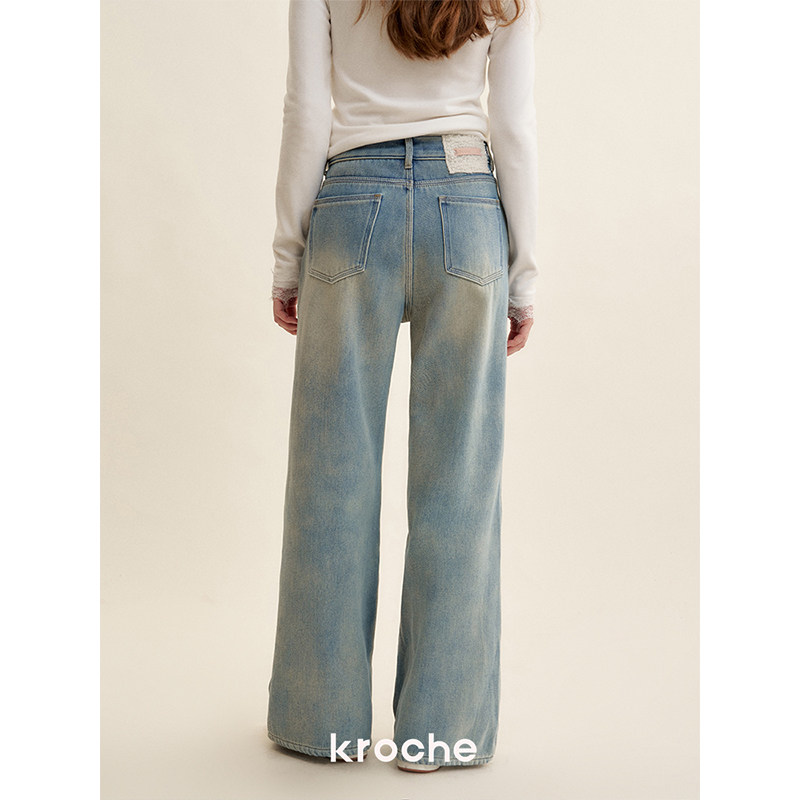 糖炒栗子特殊水洗色巨洋气薄绒显腿直牛仔裤 Here 12.8 shop yaya