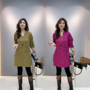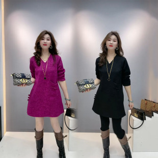 盘扣单兜简约轻熟风V领宽松休闲连衣裙 2026秋冬新款 时尚 国风大衫