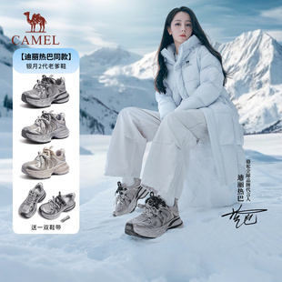 2025秋季 骆驼女鞋 新款 休闲加绒老爹鞋 女 厚底增高银色运动鞋 银熠