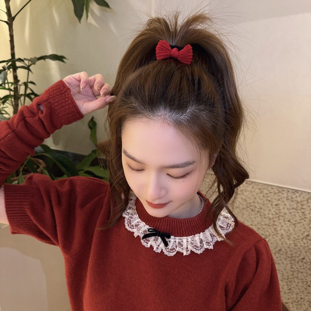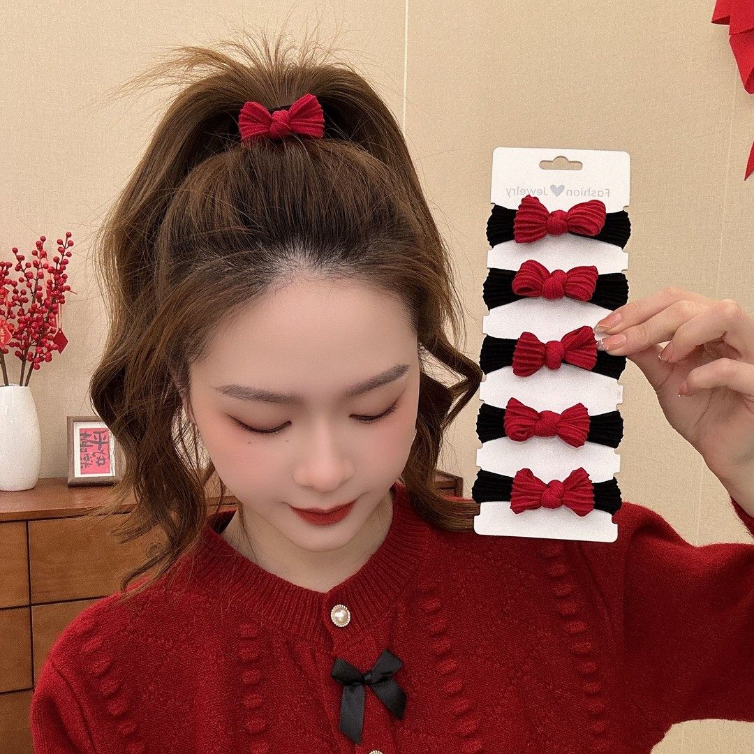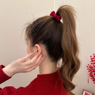 新年高品质蝴蝶结红色发绳秋冬加粗加厚高弹力甜美百搭发圈女头绳